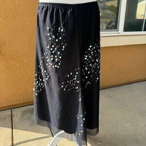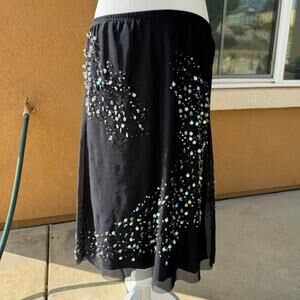 Whimsigoth fairy Black BCBG Maxazria silk skirt with iridescent sequin beaded sparkly details