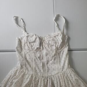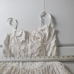Whimsy Fairy Coquette Milkmaid Dress Womens Large White Black Polka Dot Flirty