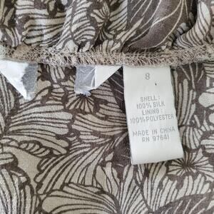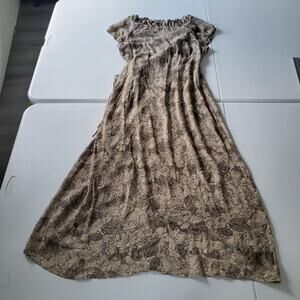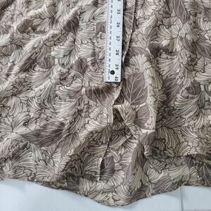 Silk Wrap Dress Womens 8 Brown Beige Leaf Print Ruffle V Neck Maxi Short Sleeve