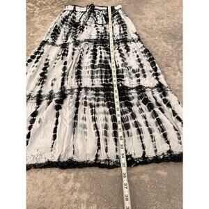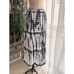 Whimsygoth Boho Maxi Skirt Tie Dye Crochet Trim Tiered Festival Elastic Waist S