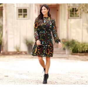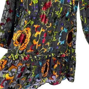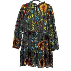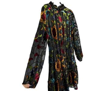Velvet Burnout Artsy Sheer Floral Embroidery Ruffled Mockneck Dress Women's XL