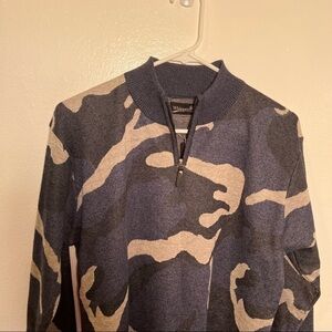 Great condition, new with tags. Whipper In. Quarter Zip Pullover sweater. Blue gray, and black camouflage pattern. Long sleeve. Style 89165V. Size 18/20. 100% polyester. Pit to pit laying flat 20” Shoulder to hem 25.5” Sleeve (pit to hem) 22”. All measurements are approximate and taken lying flat. Smoke free home. No trades, offers welcome.