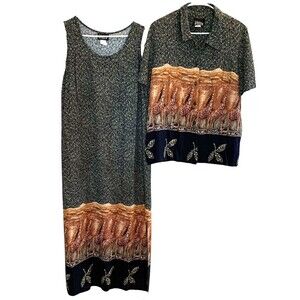 Whirlaway Frocks 2-PC Dress Womens16 Giraffe Print Bohemian Side Slits VTG 80s