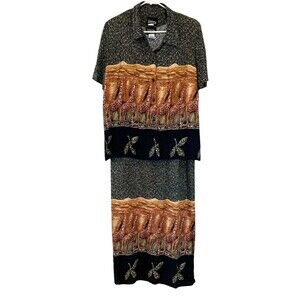 Whirlaway Frocks 2-PC Dress Womens 16 Giraffe Print Bohemian Side Slits VTG 80s