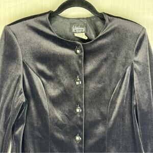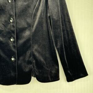 Whirlaway Frocks Black Velvet Button Blazer Petite Size 12 Vintage Short Sleeve