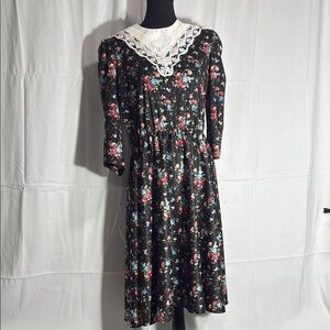 Whirlaway Frocks Floral Black Dress with Lace Collar Size 12P