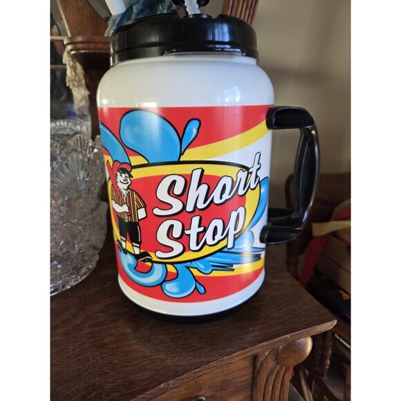 Huge insulated mug by Worley, has a baseball theme, "Short Stop" with a cartoon player.