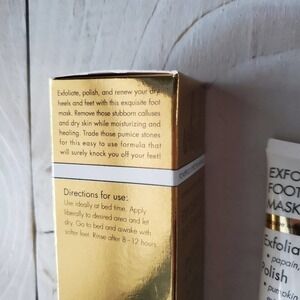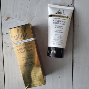 Whish exfoliating foot mask. Exfoliate, polish, and renew your dry heels and feet with this exquisite foot mask. Remove stubborn calluses and dry skin while moisturizing and healing.