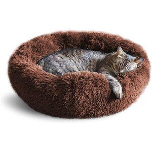 🧿Premium Material: Our aesthetic warm cozy Cat bed and donut round Dog bed are made with the finest long fluffy plush & polypropylene fabrics. We fill our beds with more plush (Roughly 25% more than the other comparable pet beds).