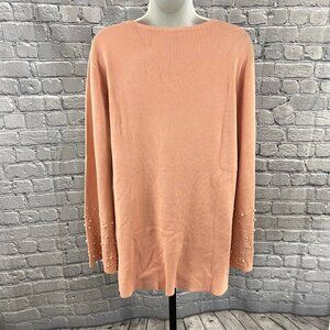 Whisper Knit By Louis Dell Olio Womens Pink Pearl Sleeve Sweater Size L NEW