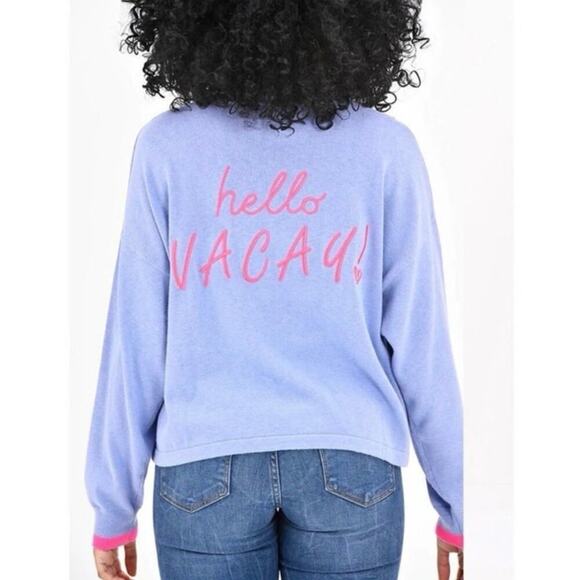 Whisper by Brodie “Hello Vacay” Spring Preppy Novelty Sweater Periwinkle EUC M