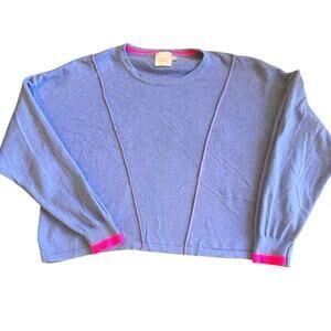 Whisper by Brodie “Hello Vacay” Spring Boxy Preppy Novelty Sweater Periwinkle Fuchsia EUC M