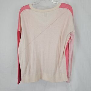 Whisper by Brodie Womens Sweater XS Silk Cotton Vneck Colorblock Quiet Luxury Multiple Shade of Pink
