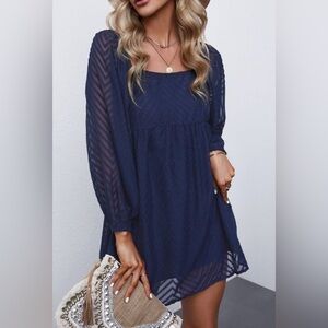 Radiate femininity in this textured long sleeve mini dress. A flirty look that feels effortless, this balloon-sleeve dress is crafted in a unique textured pattern. So loose with a relaxed fit and squared neck this is dress you will reach for in your wardrobe! Pair this mini dress with leggings, or booties to light up your style!