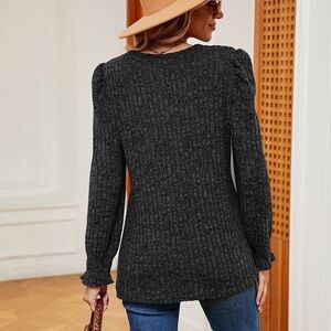 Indulge in the timeless elegance of our Whispering Winds Women’s Puff Sleeve Sweater. This square neck masterpiece is designed for those who appreciate the delicate balance of comfort and style. The puff sleeves add a touch of romance, creating a silhouette that effortlessly transitions from casual to chic. Crafted from a slightly stretchy blend of 65% rayon, 30% polyester, and 5% spandex, this ribbed sweater promises both flexibility and durability.