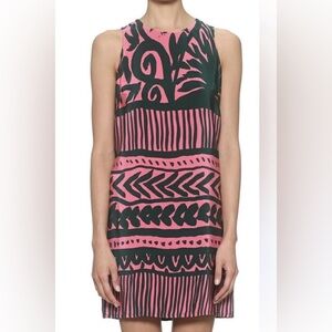 Whistle 100% Silk Green and Pink Sleeveless Shift Mini Dress Sz-10