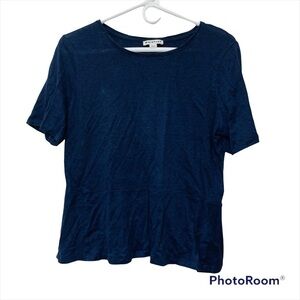 Great Navy Blue Whistles 100% Linen Peplum shirt sleeve shirt.