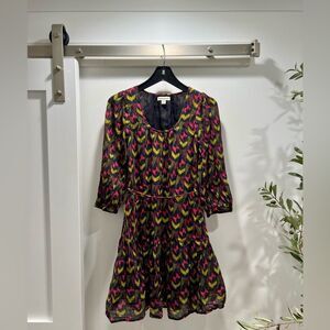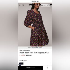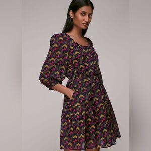 Whistles Black Geometric Ikat Trapeze Dress US 0
