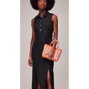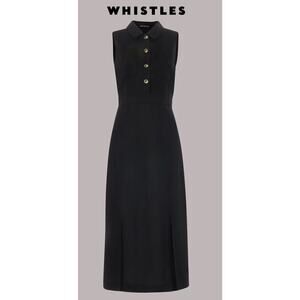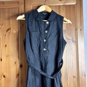Whistles Black Molly Linen Midi Dress Womens 6 Minimalist Quiet Luxury Old Money