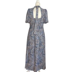 Whistles Blair Puff Sleeve Dress Women's Blue Midi Feminine Open Back Bow