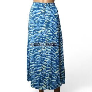 Whistles Blue Wave Print Button Front Midi Skirt Seafoam A-Line Summer Size 4