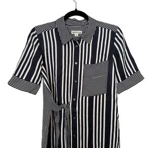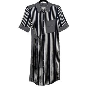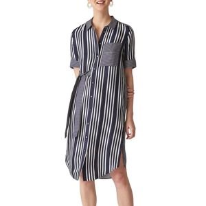 Whistles Blue & White Striped Button Front Midi Shirt Dress Size 4