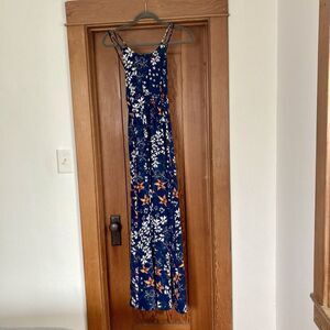 Whistles Bluebell 100% Silk Buena Strap Maxi Dress Blue Floral Print Size 6