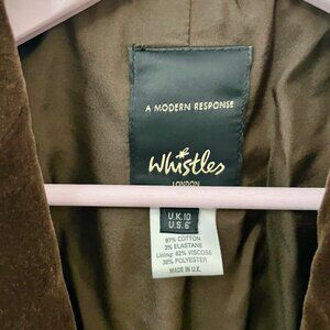 This is a gently used Whistles Brown Velvet Longline Blazer Size US 6. In excellent condition. Minimal wear. See all pics for condition.