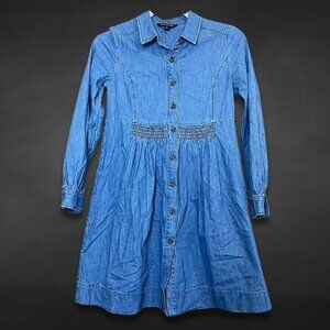 Whistles Dress Button Front Closure Long Sleeve Lightweight Denim Blue Women's 0