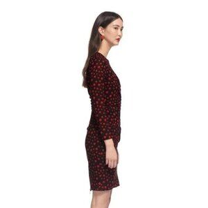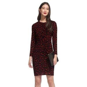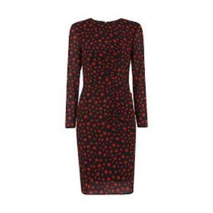 Whistles Eclipse Print Side Ruched Silk Bodycon Dress Red Multi Size 4