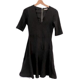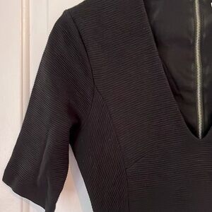 This little fit and flare is SO cute. Love the ribbing throughout and the back exposed zipper. Flattering split V-neckline. In excellent condition. No flaws. Nice thick material so it should not be see through. Size US 6.