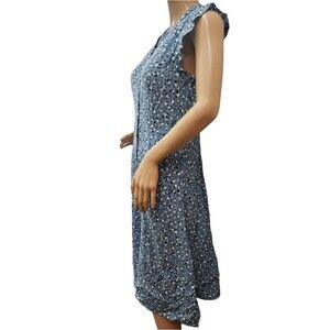 Step into warmer weather with this effortlessly elegant summer dress. Complete with a frilled design at the sleeves, a button-down front and pockets, the silhouette is fluid and relaxed, exuding a laid-back feel. Complement its soft blue hue and animal print with accents of gold jewellery and your favourite sandals.p>