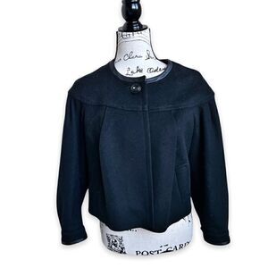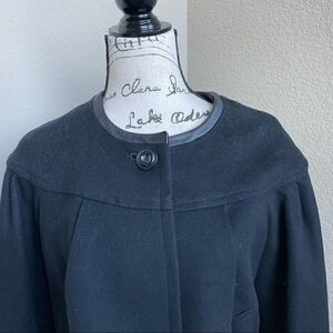 Whistles London Cropped Cape Jacket with Pockets and Faux Leather Trim Size 6