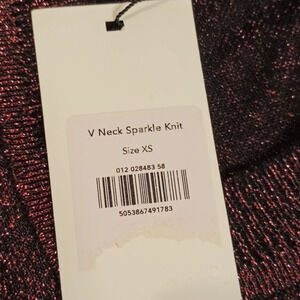 Whistles Metallic Pink V Neck Sparkle Knit NWT Top EEE