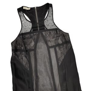 Whistles Mini Dress Black 100% Silk Lace Sleeveless Size 2 Little Black Dress