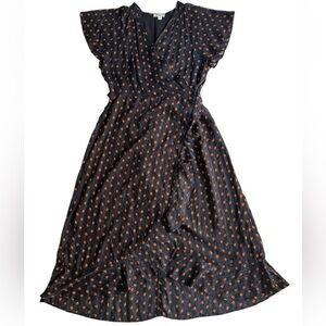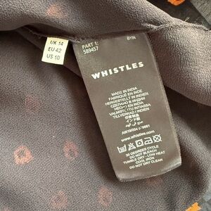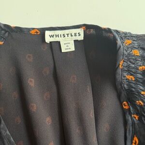 Tags whistles dress wrap midi dress navy dress scattered leaf print size 10 workwear style preppy fashion dressy outfit party dress elegant look office to evening versatile dress classic silhouette feminine style fall fashion chic and polished timeless design flattering fit soft fabric elevated basics day to night outfit modest style stylish comfort business casual semi formal wardrobe staple