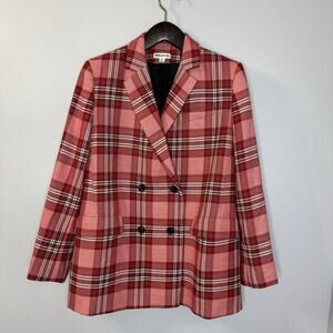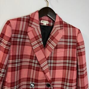 Whistles Red Plaid Double Breasted Blazer Oversized Women's M Academia