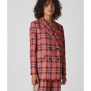Whistles Red Plaid Double Breasted Blazer Oversized Women's