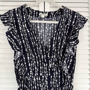 Whistles Savannah Print Wrap Dress Abstract Polka Dots Navy White Costal Size 10