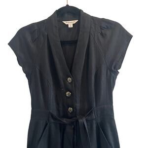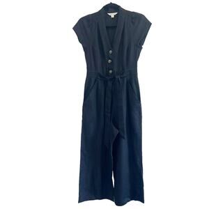Whistles Size 0 Linen Wide Leg Cropped Black Button Belted Jumpsuit