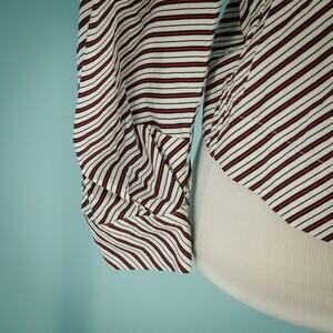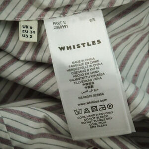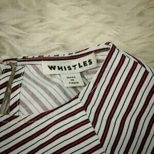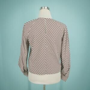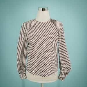 Whistles Size 2 US Red Blue Diagonal Stripe Crew Scoop Neck Puff Balloon Long Sleeve 100% Cotton Top Blouse Shirt- Style 2068991