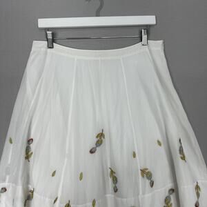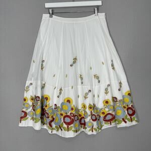 Whistles Skirt Womens 10 White Floral Embroidered Midi Boho Cottagecore Country