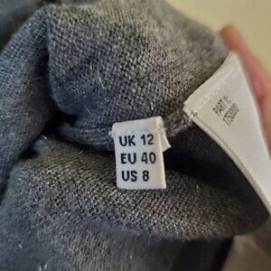 Whistles Sparkle Sweater Gray Subtle Sparkle, Size 8. Stock photos for reference only. Super Soft Viscose, Scoop Neck, Long Sleeve, Subtle open knit down back. Good Pre-Owned Condition