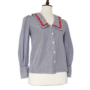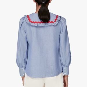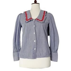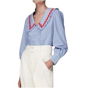 Whistles Women's Blue Striped Ric Rac Collar Button Front Top Size 0