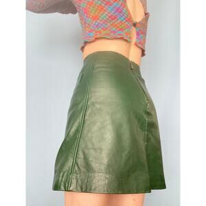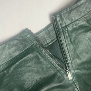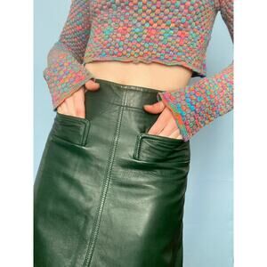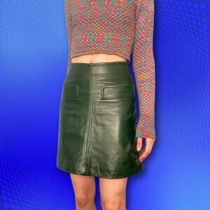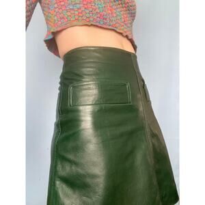 Office vixen leather mini skirt from Whistles in a stunning bottle green. Zipper closure on the back and pockets on the front.