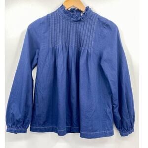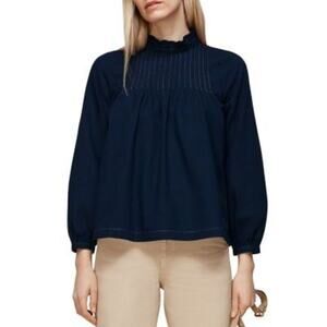 Whistles Maja Chambray Pintuck Top Size 4 Navy Blue Long Sleeve