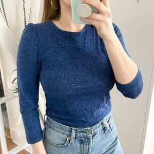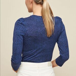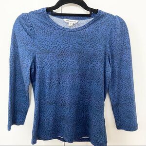 Whistles Ocelot Print Puff Sleeve Blue & Black Top Size Small / 4