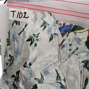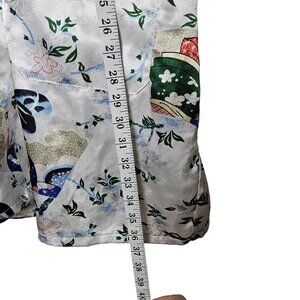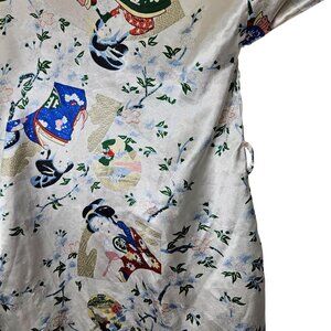Whitby Silver Satin Kimono Robe Medium With Japanese Geisha Print & Floral Desig