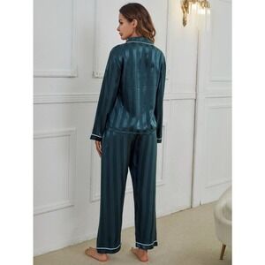 White 2 piece pajama set: Contrast Binding striped Satin pj Set
