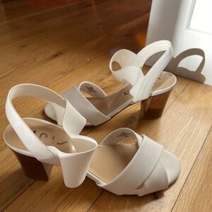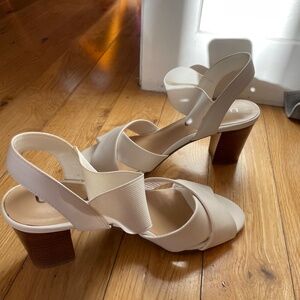 Selling a pair of white heels used once for an event. Band on the front is elastic and stretchy, but I recommend these shoes for someone with a high / wider forefoot.